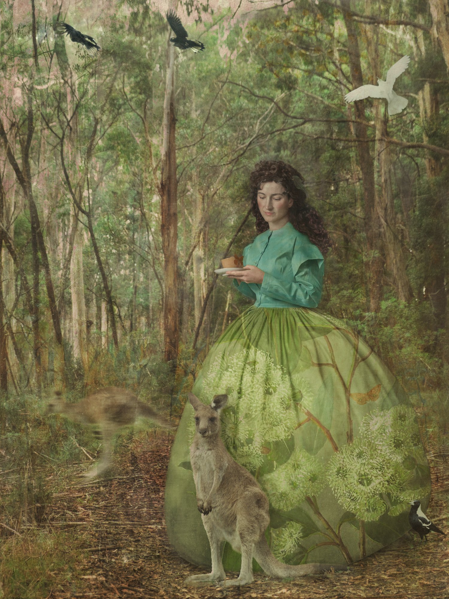 While researching stories of women in the goldrush era of Australia, I couldn't help but wonder if there were any strong folklore practices that arrived with them. I imagined women gathering in secret to bless the Earth and discard the shackles of their Victorian era lives. This beautiful coven is represented by true friends, whom I was blessed to witness in their unity. Little direction was needed by me as they channelled the power of the feminine spirit. This brings to life my imaginings of 'bush witches', as well as the strong friendships immigrant women developed with each other.